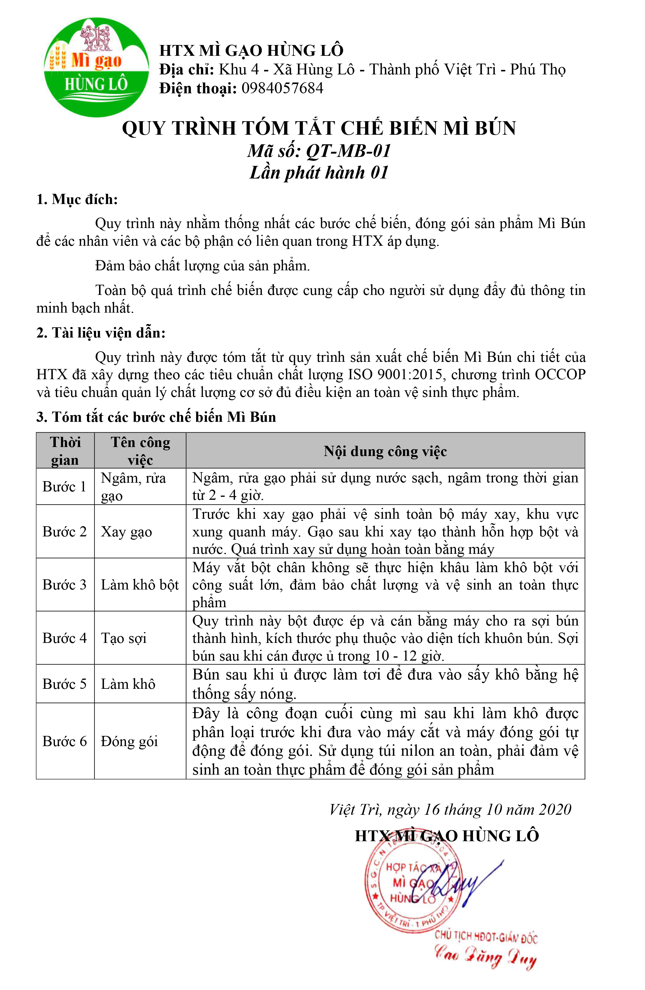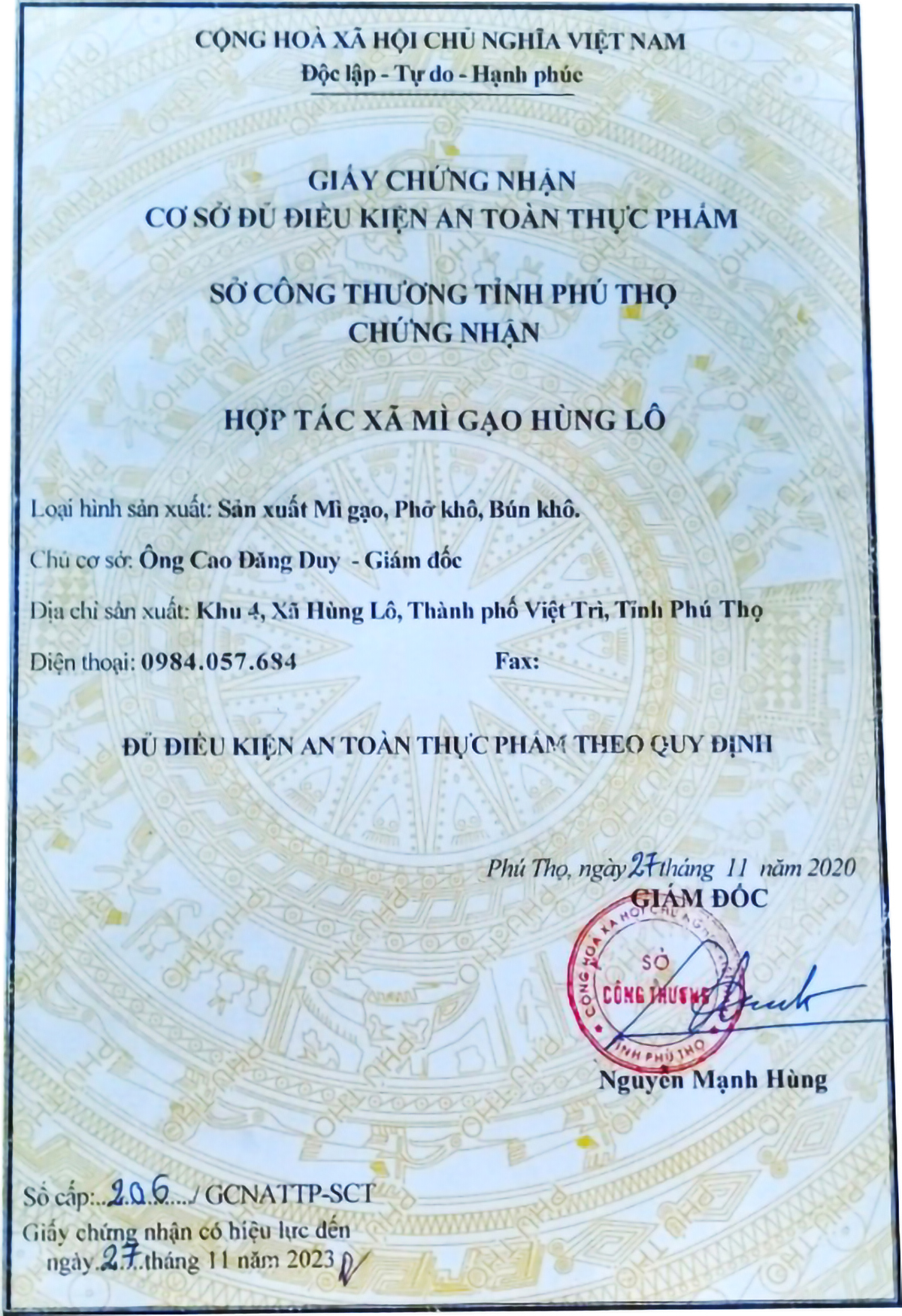 Nội dung: Một số sản phẩm của HTX Mì gạo Hùng Lô.
